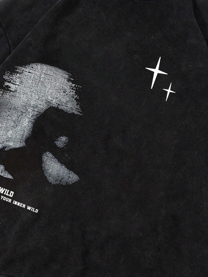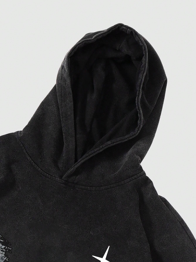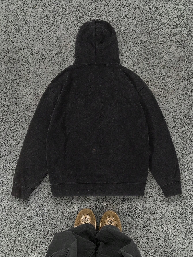 ■ 顏色 : 水洗黑印花長袖帽TEE