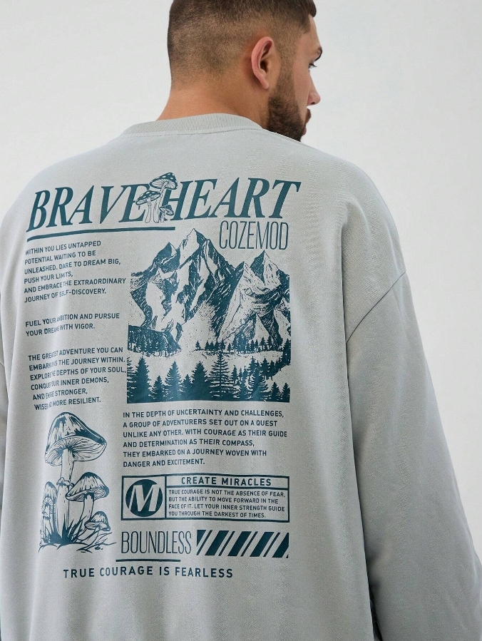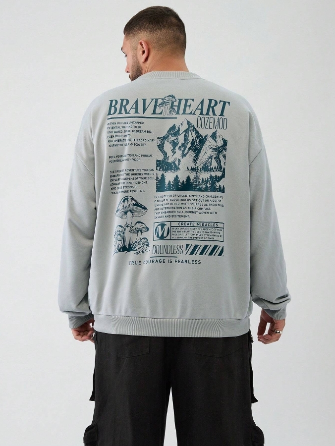 ■ 顏色 : 灰色印花長袖TEE