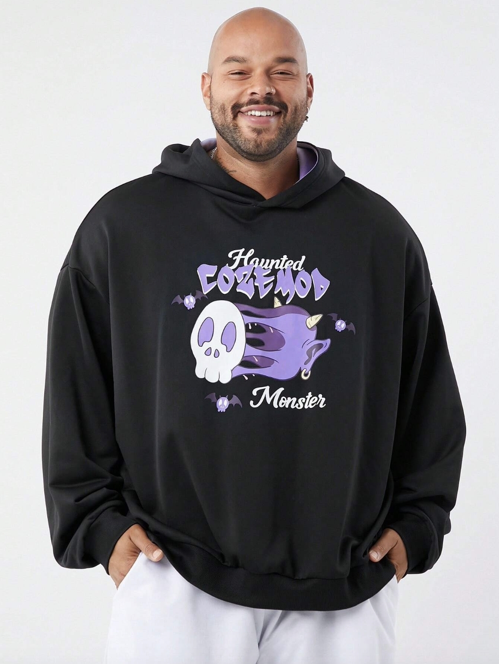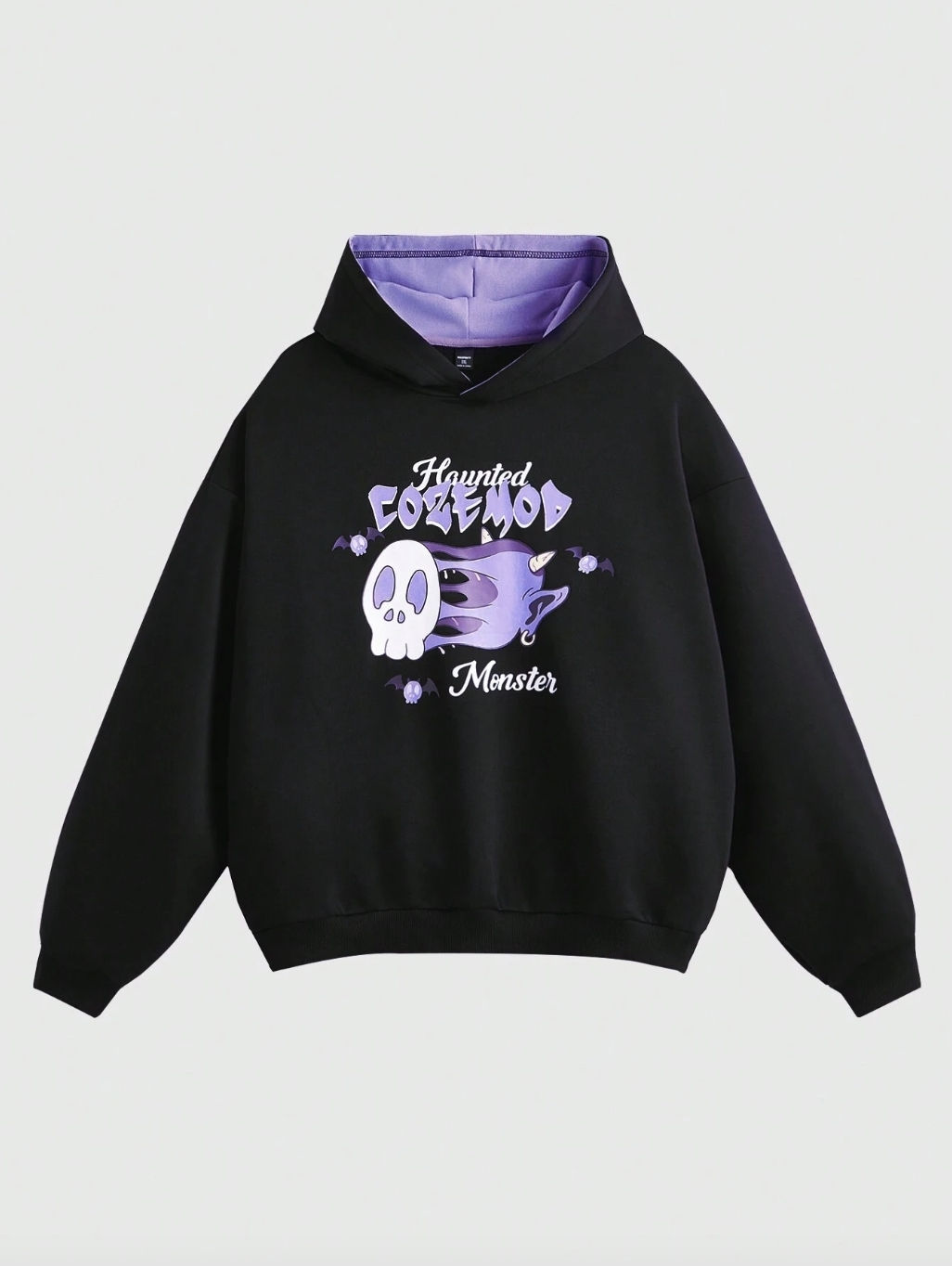 ■ 顏色 : 黑紫印花長袖帽TEE