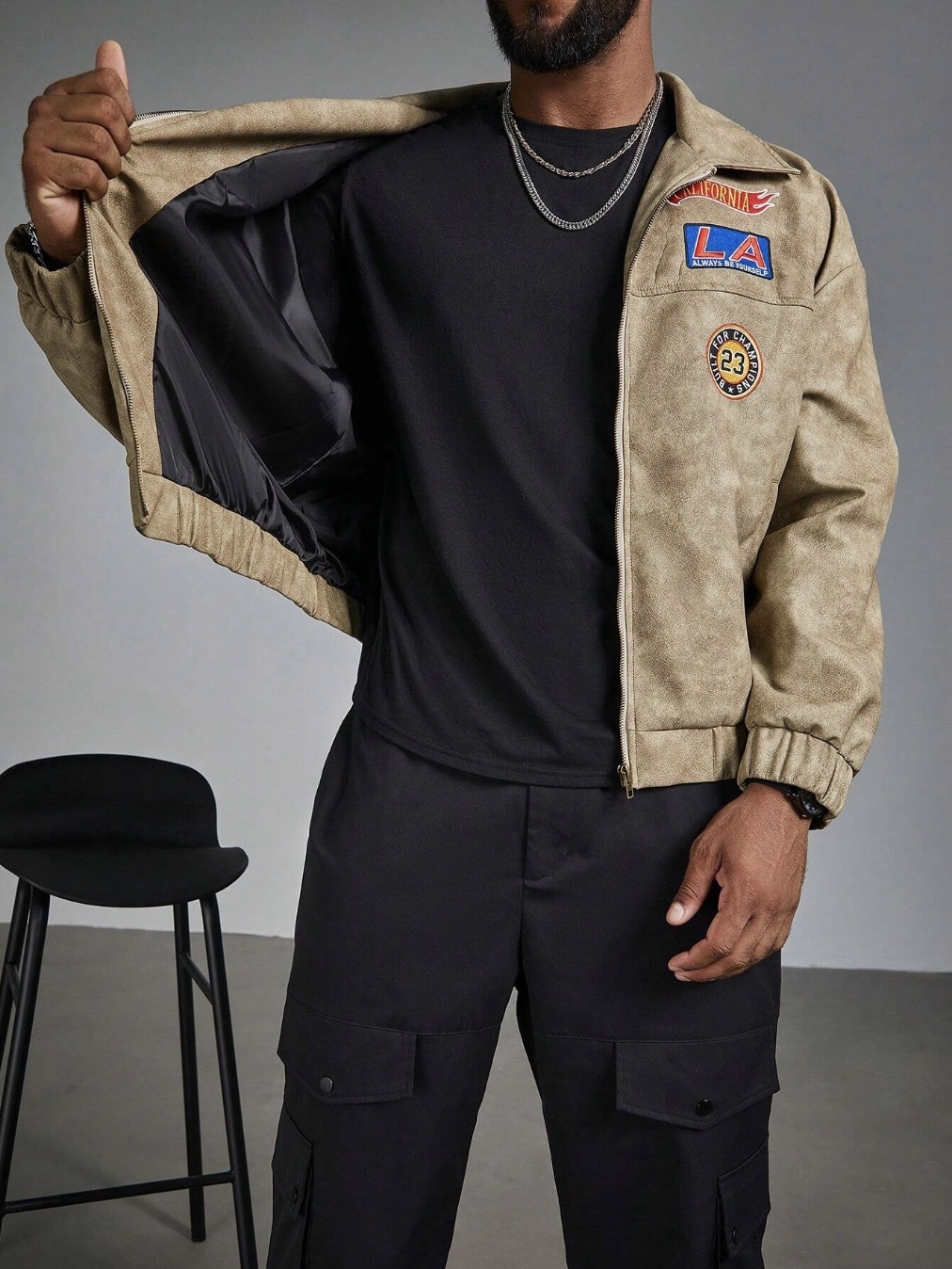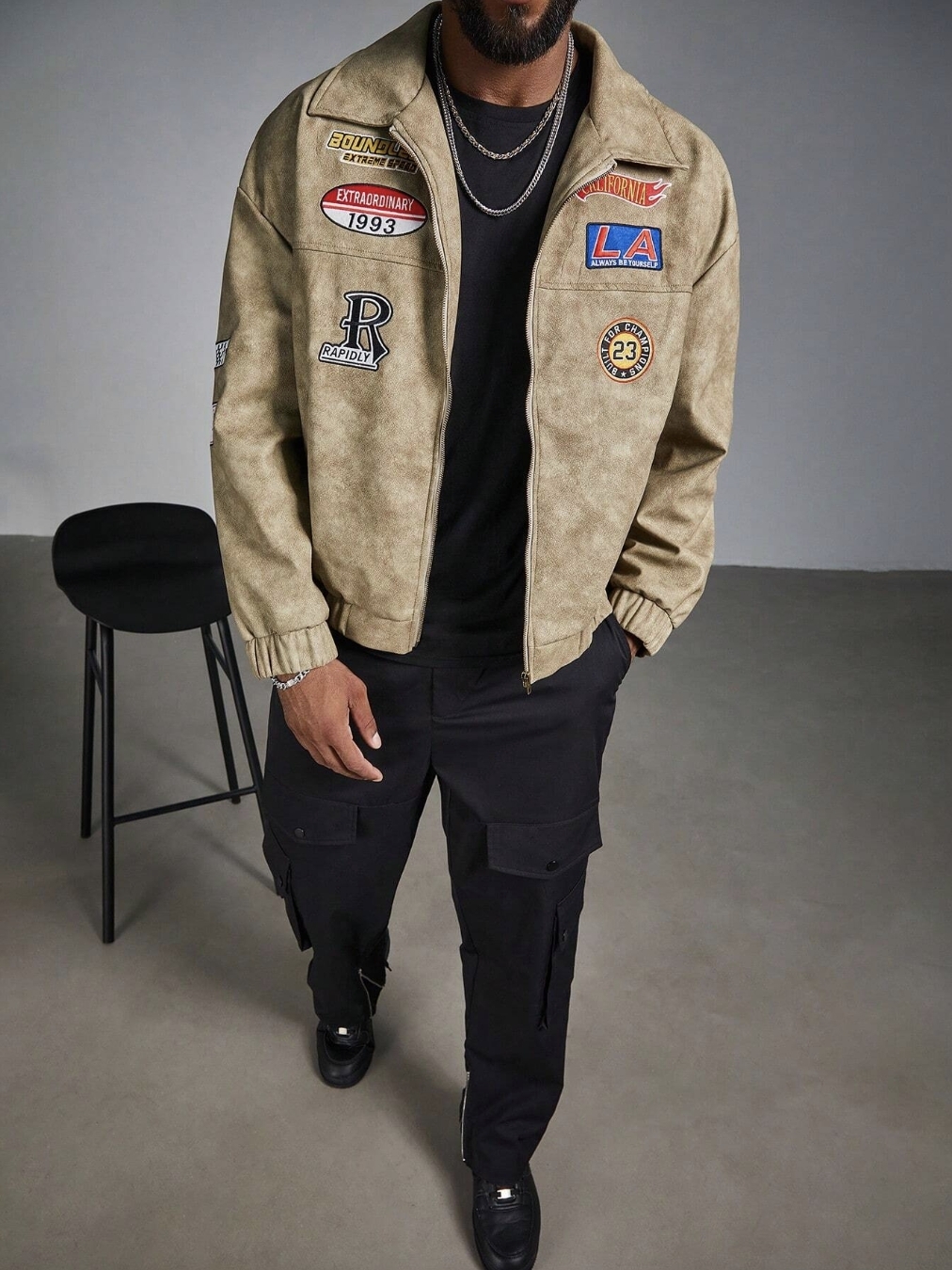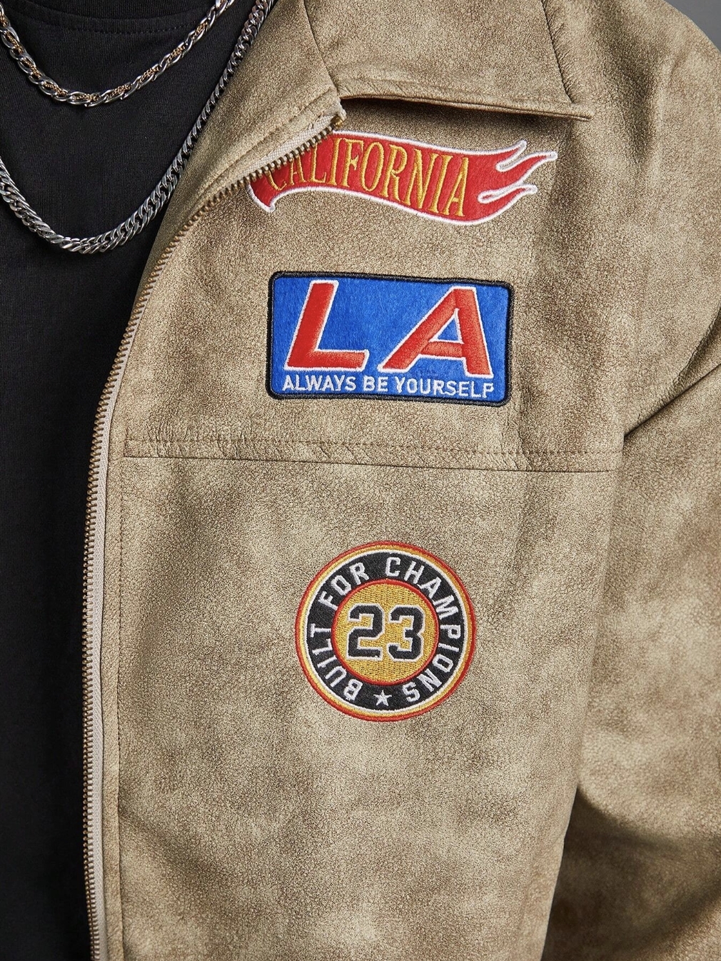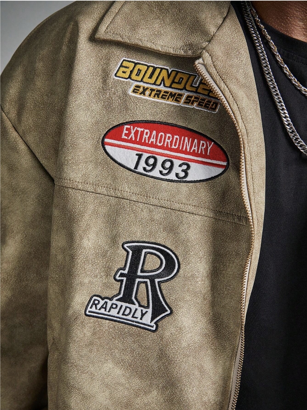 ■ 顏色 : 刺繡皮革飛行長袖外套