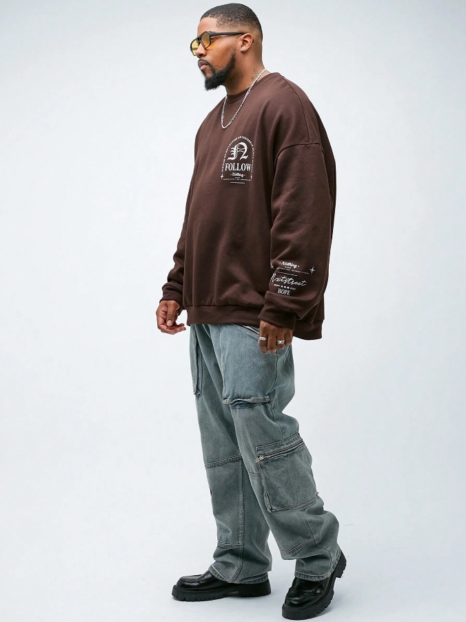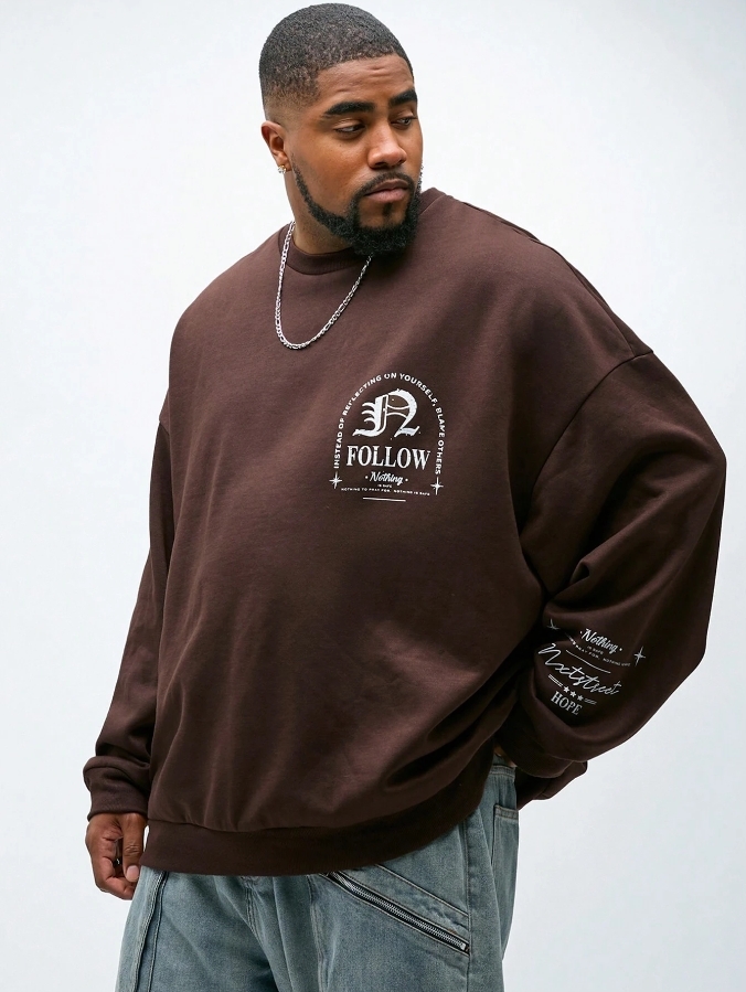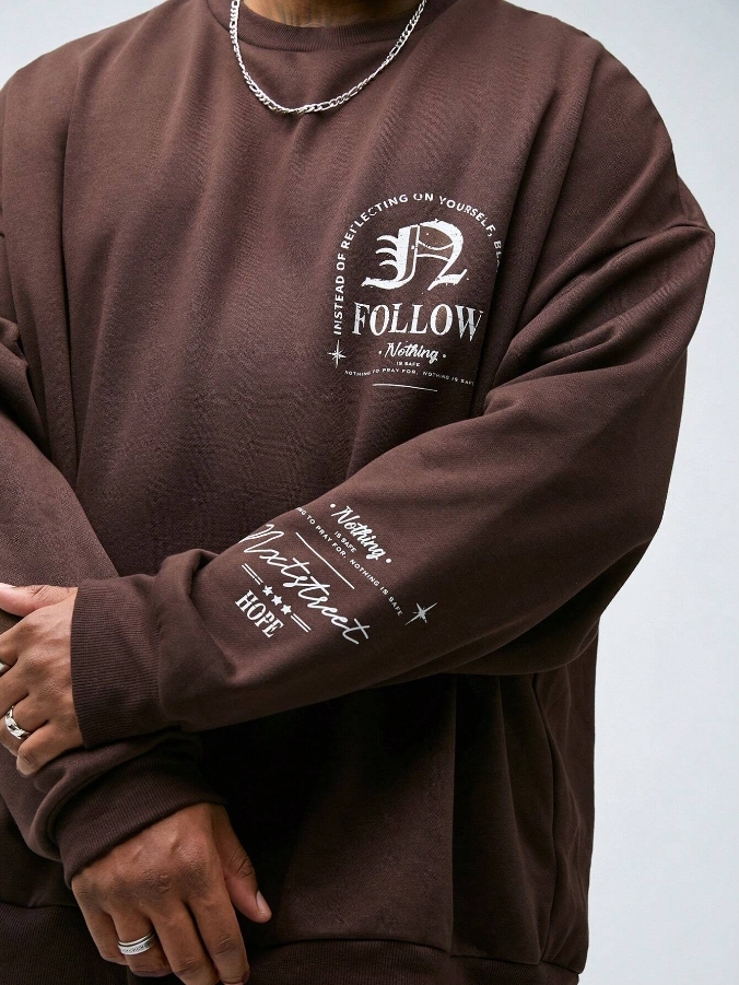 ■ 顏色 : 咖啡印花長袖大學TEE