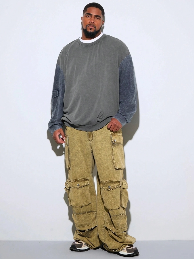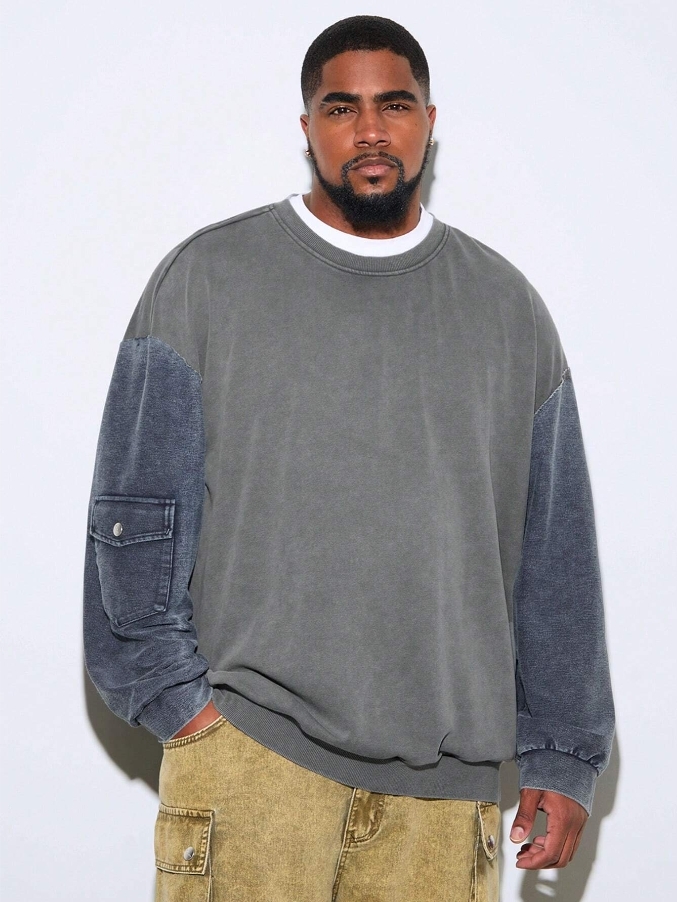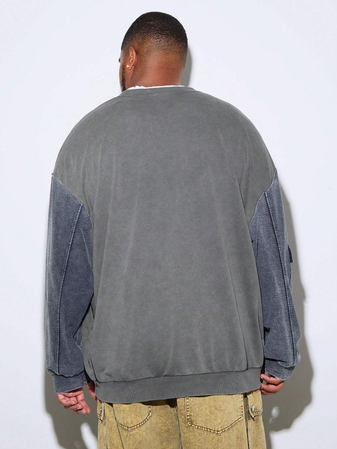 ■ 顏色 : 牛仔特殊拼接長袖大學TEE