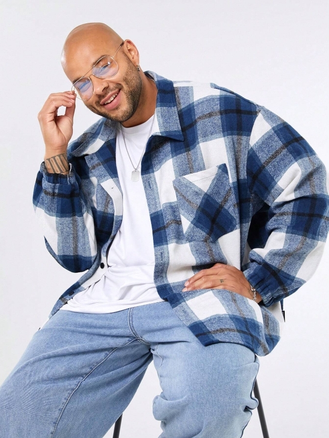 ■ 顏色 : 藍白格子襯衫外套