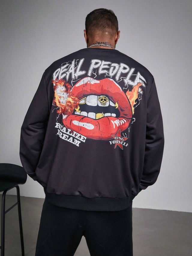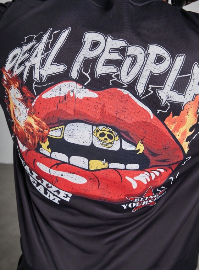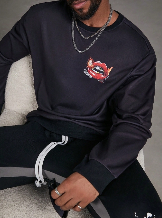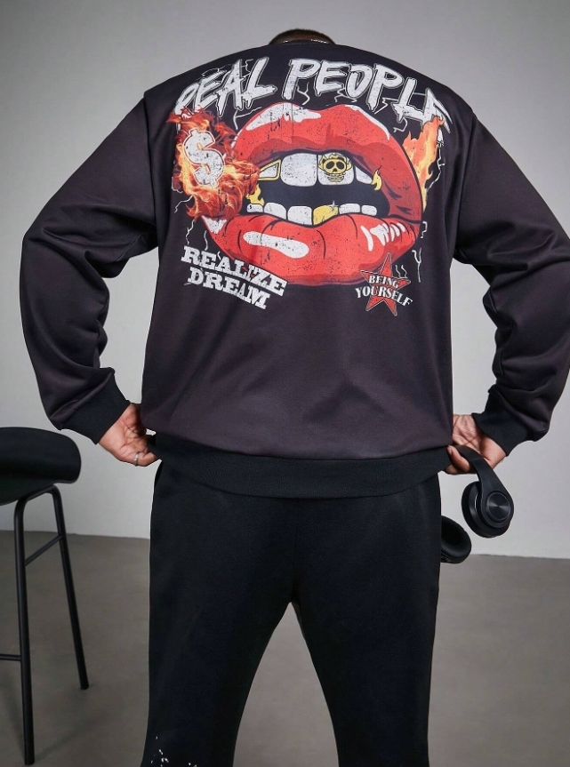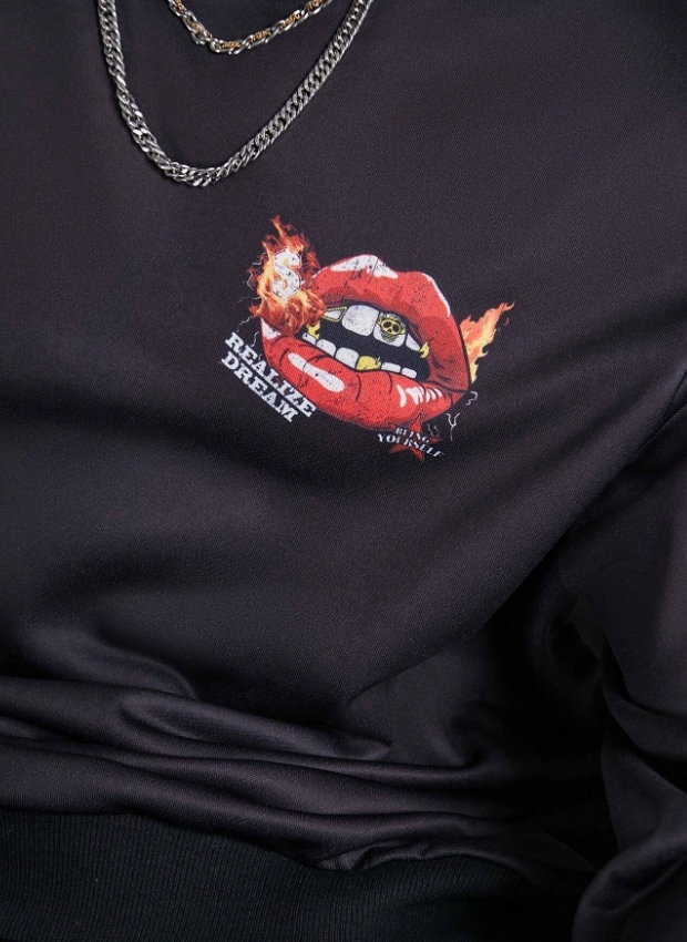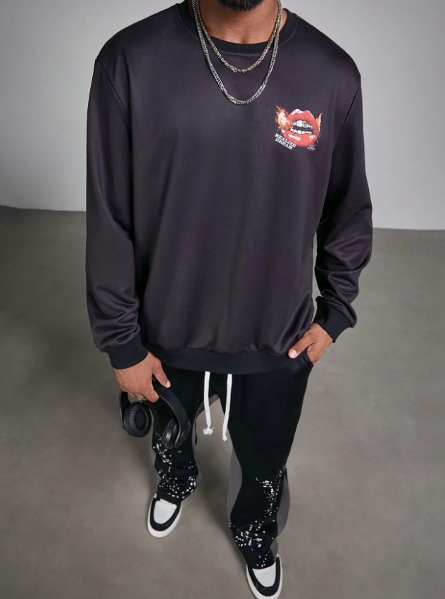 ■ 品名 : KSMS2621|秋冬長袖潮流唇印印花大學TEE