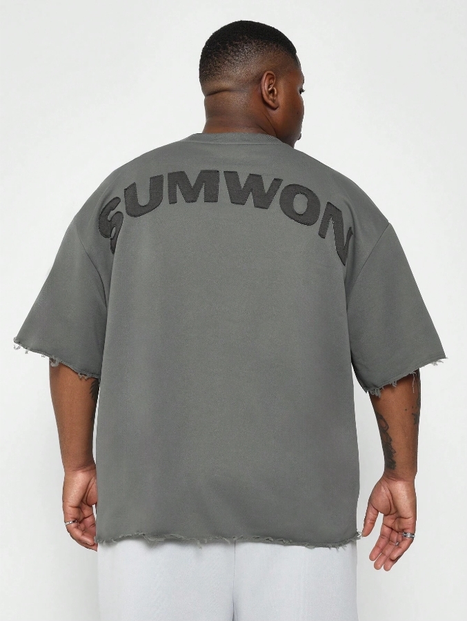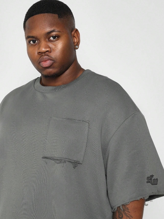 ■ 顏色 : 鐵灰破壞大刺繡短袖TEE