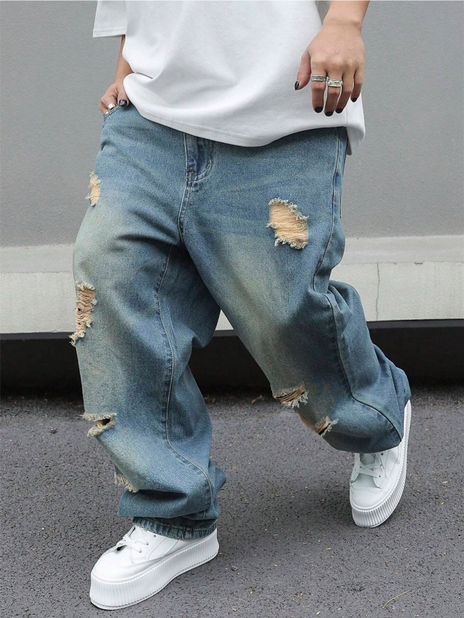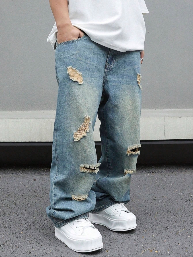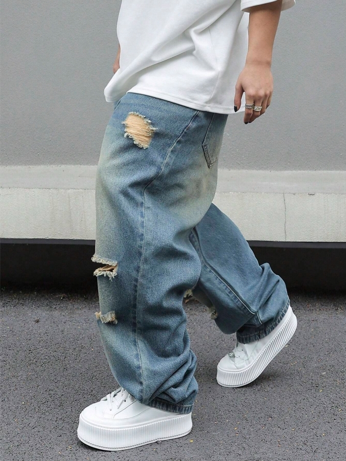 ■ 顏色 : 特殊抓破牛仔長褲