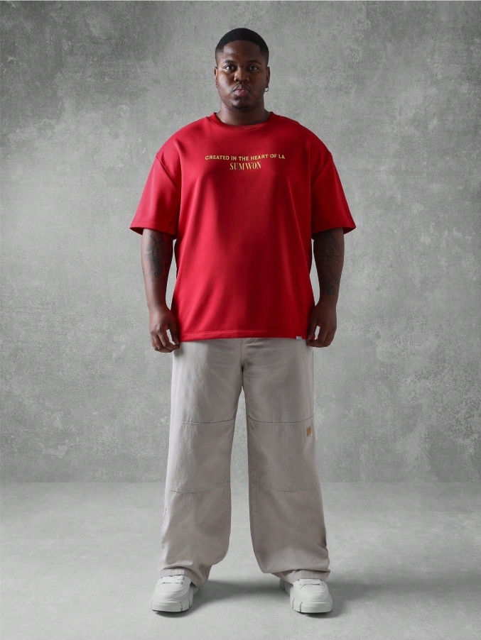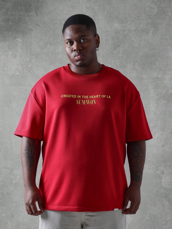 ■ 顏色 : 紅色特殊印花短TEE