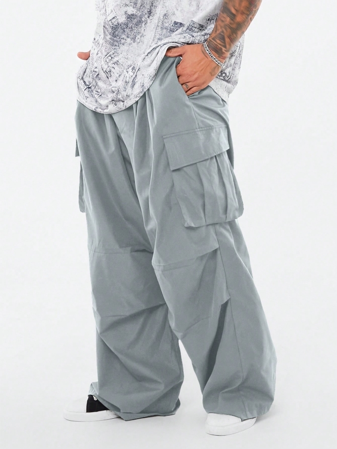 ■ 顏色 : 淺灰抽繩工裝休閒長褲