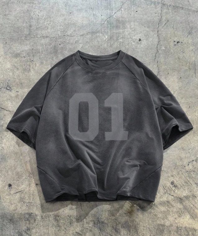 ■ 品名 : KSMS2588|大碼男水洗數字短袖TEE