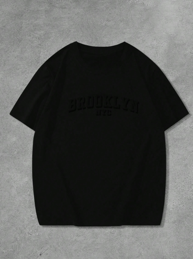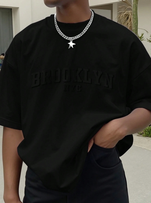 ■ 品名 : KSMS2598|大碼男簡約字母標語刺繡短袖TEE