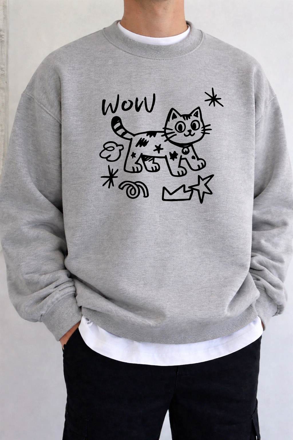 ■ 品名 : KSMS2747| 男士大碼可愛貓咪寬版大學TEE〈KSMS2747〉