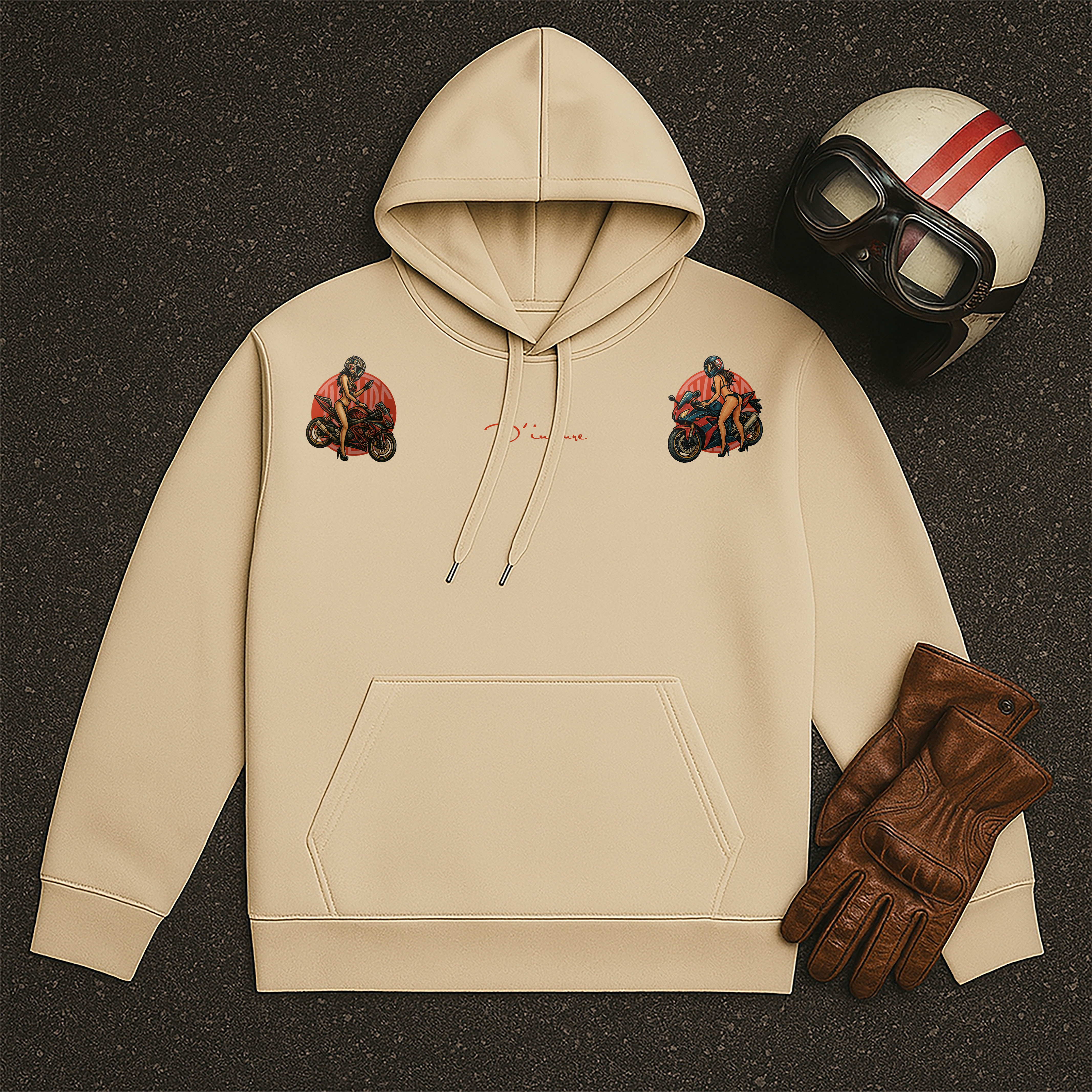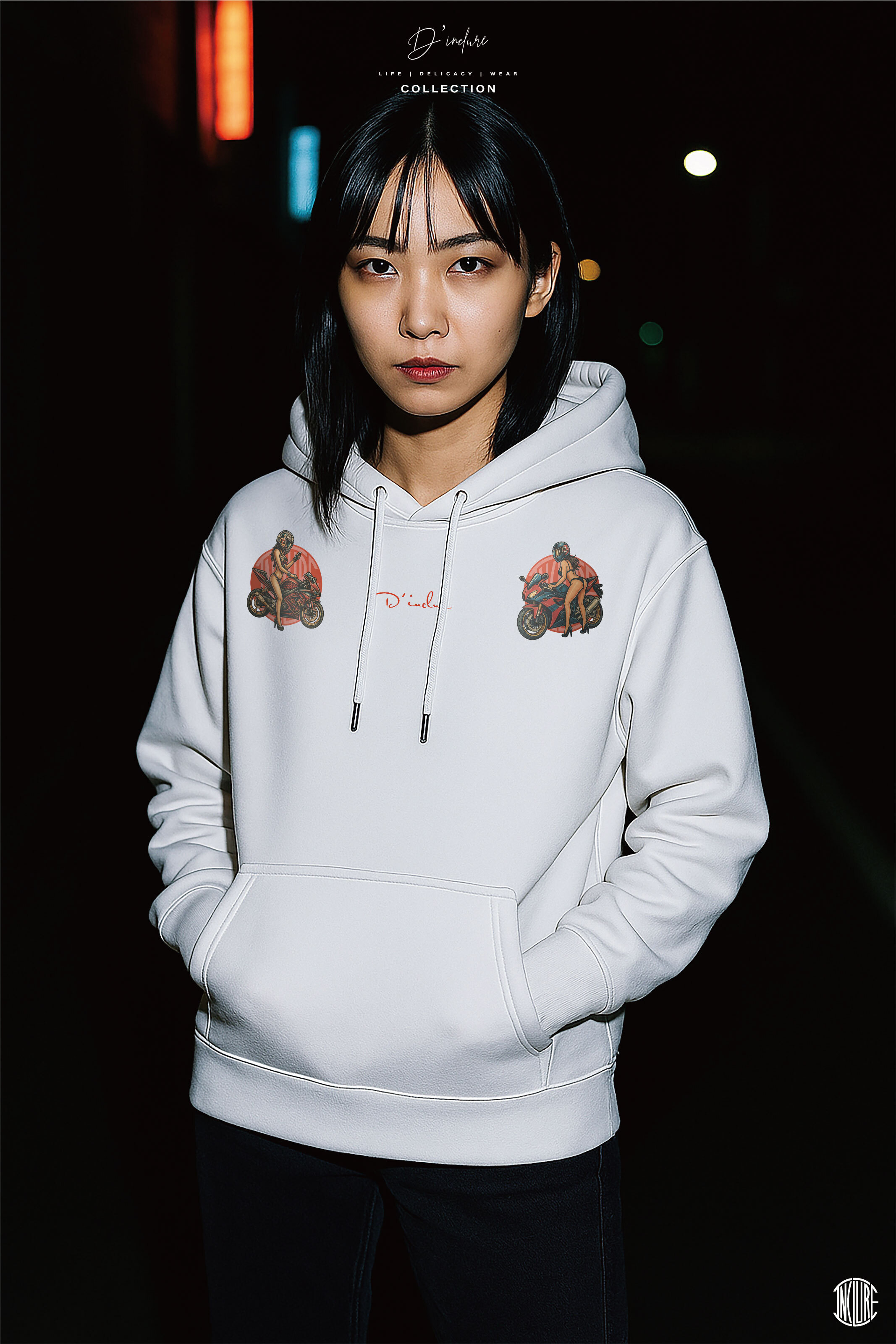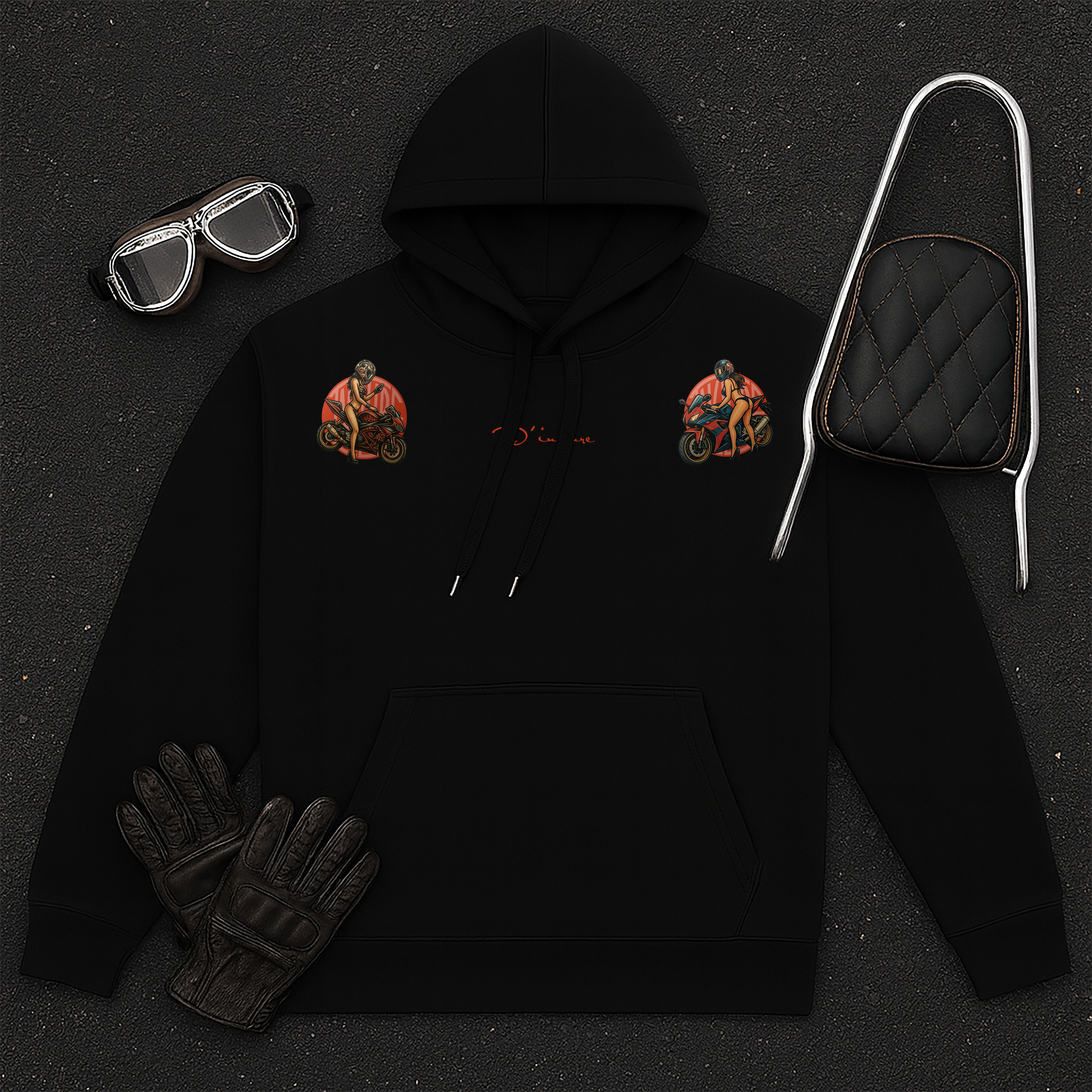 ■ 品名 : "D'INCLURE" - 老美式重機女孩 - 重磅帽T