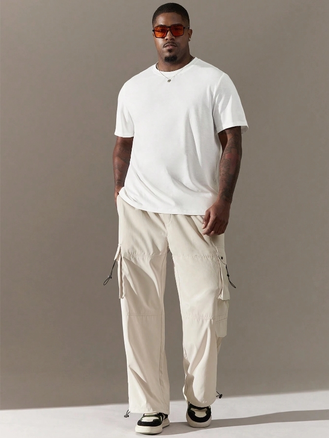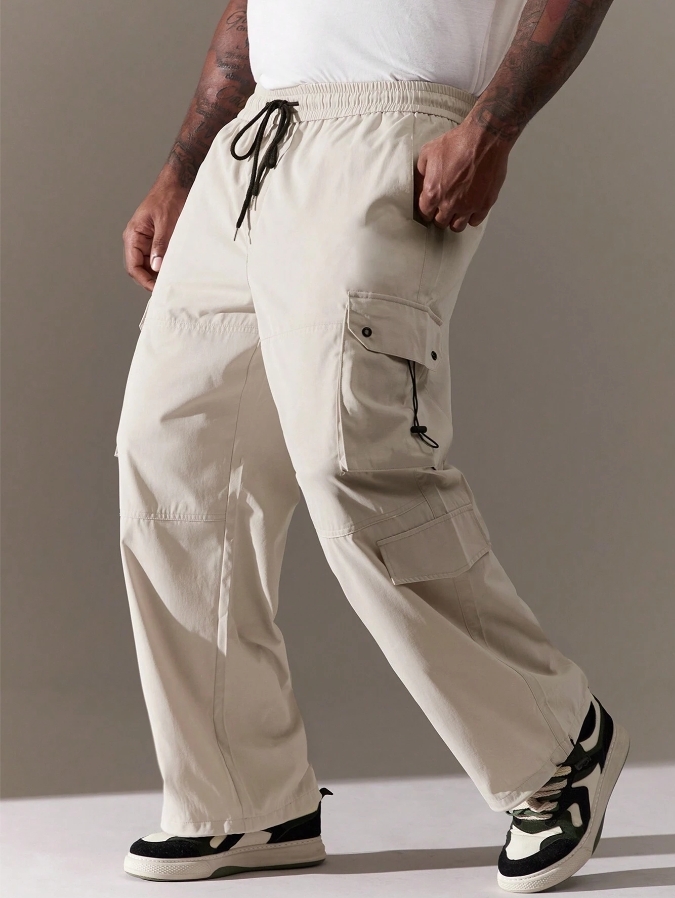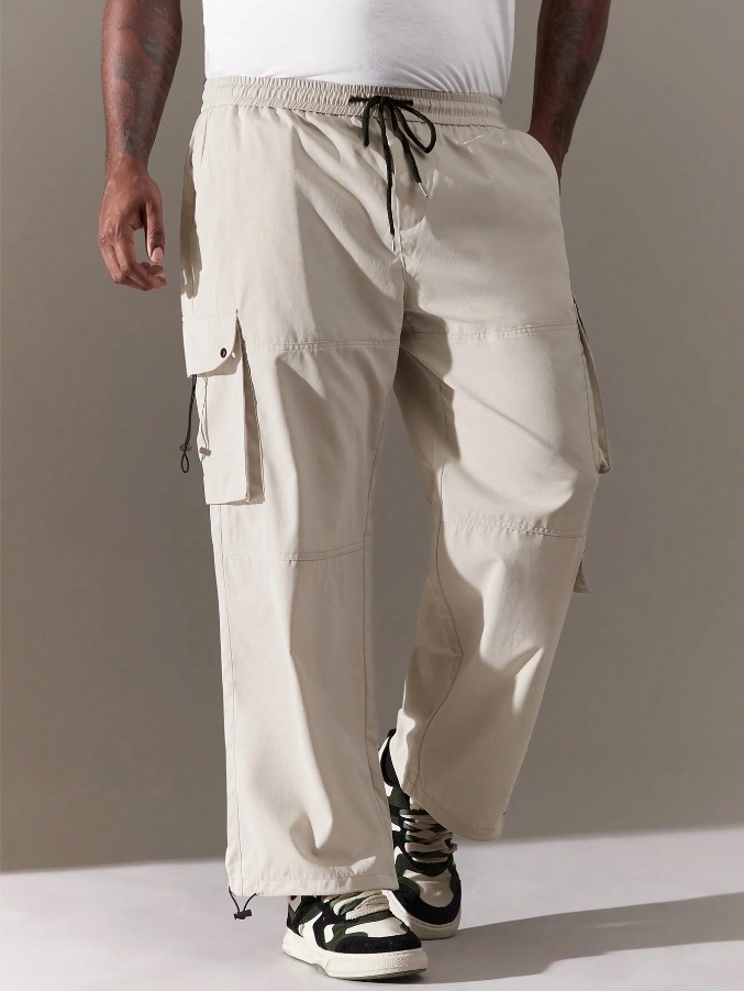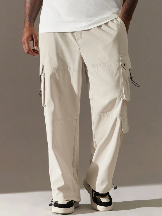■ 材質/顏色 : 淺卡其多口袋工裝褲
