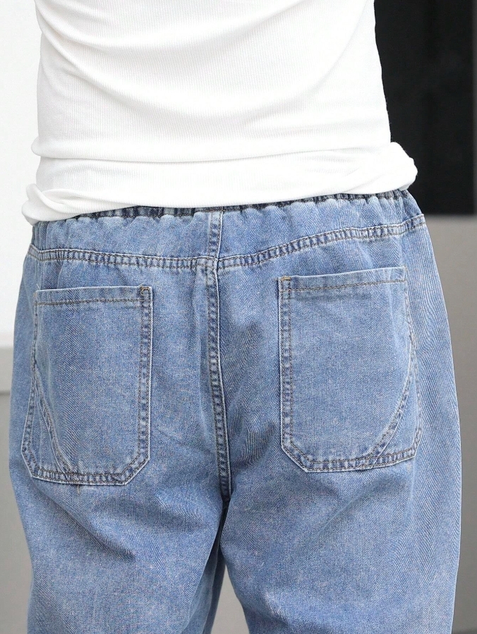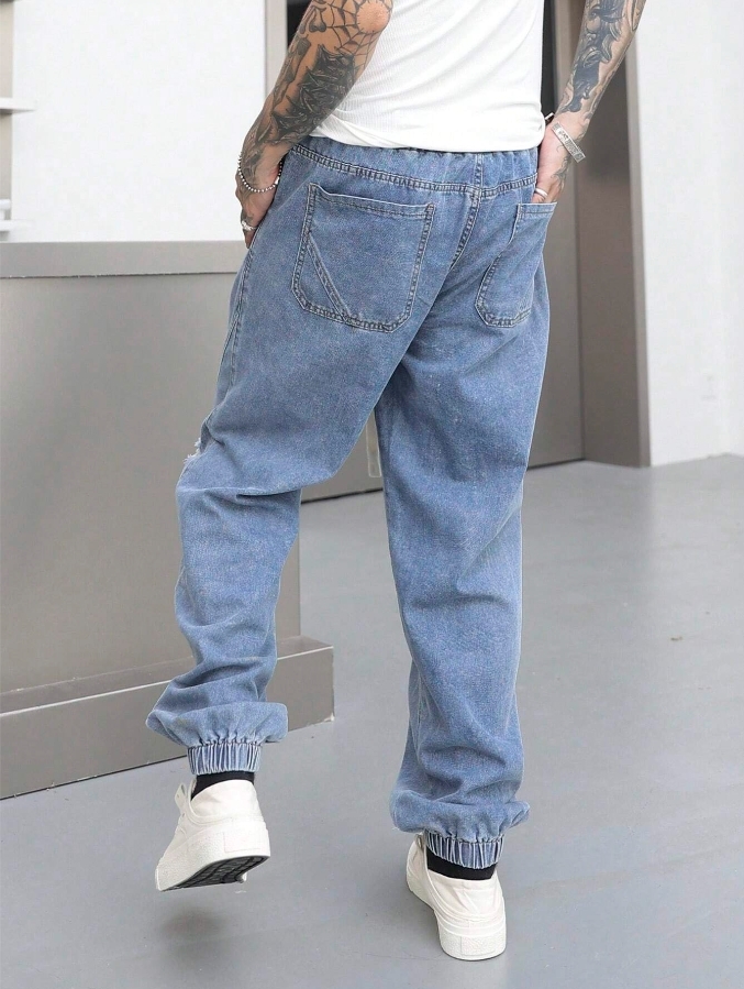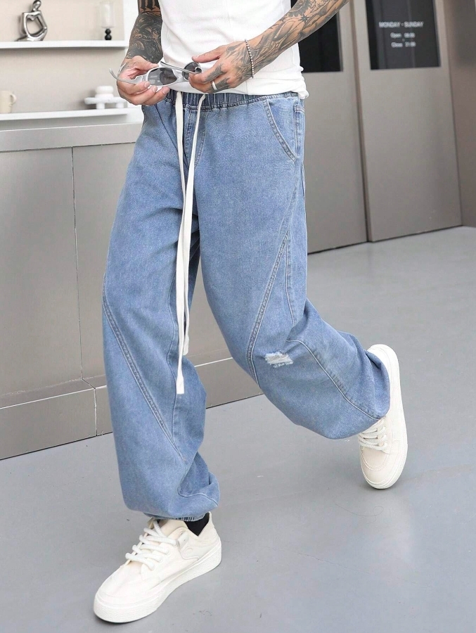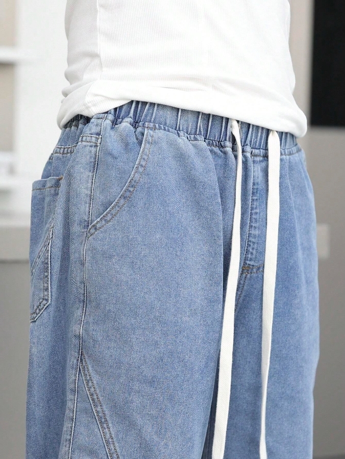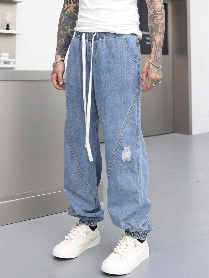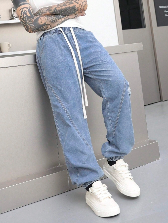■ 材質/顏色 : 抽繩剪裁縮口牛仔長褲