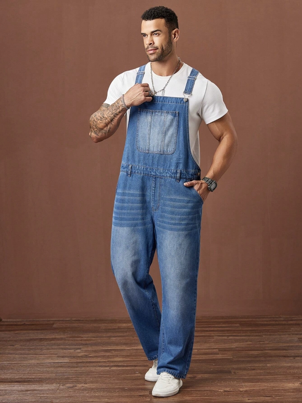 ■ 材質/顏色 : 淺刷色牛仔吊帶褲