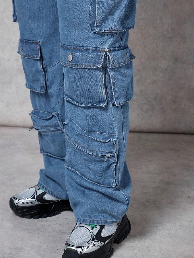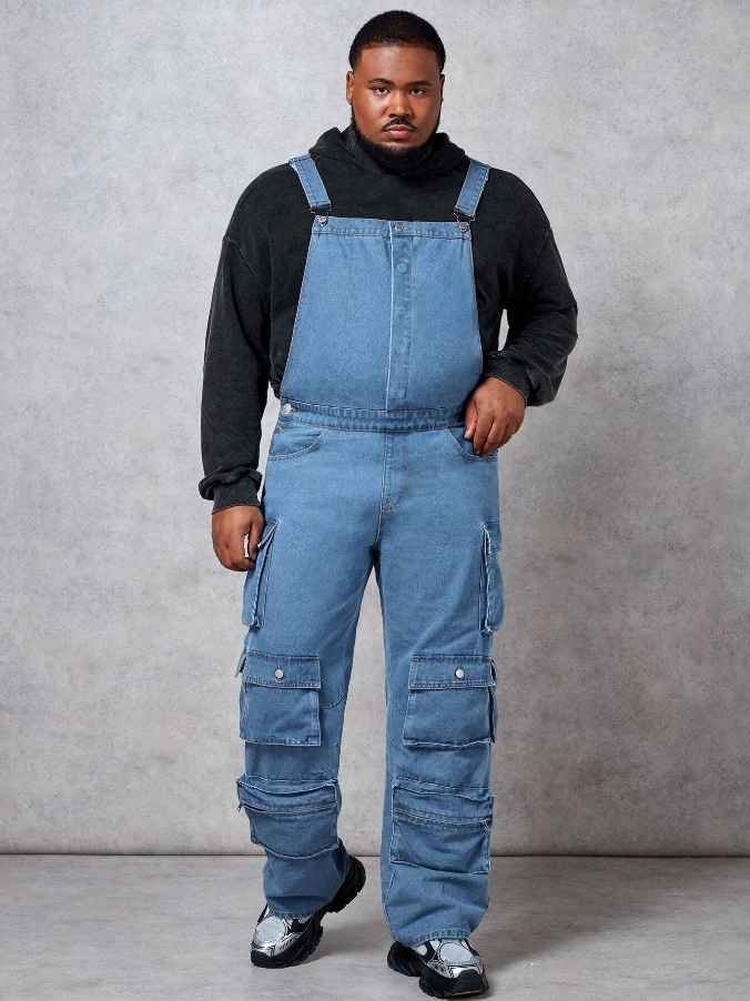 ■ 材質/顏色 : 原色多口袋牛仔吊帶褲
