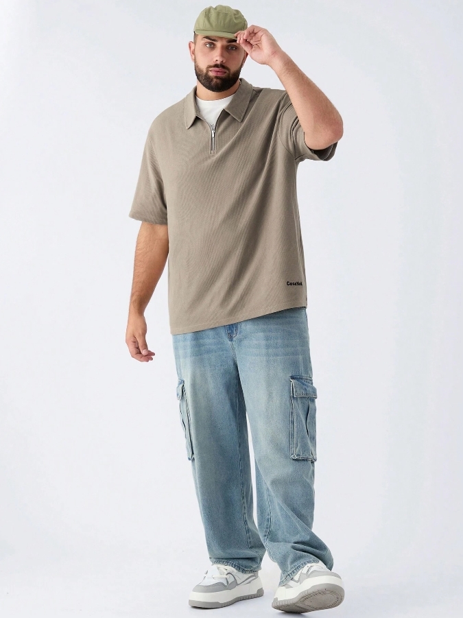 ■ 顏色 : 卡其刺繡拉鍊POLO
