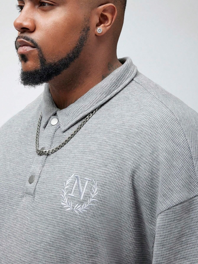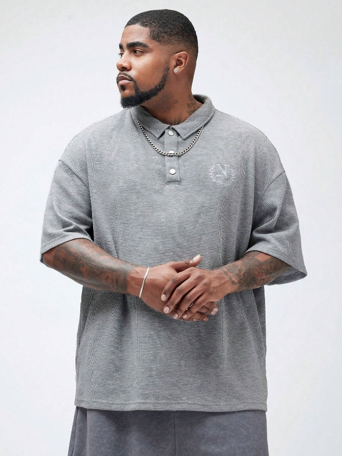 ■ 顏色 : 灰色刺繡短袖POLO
